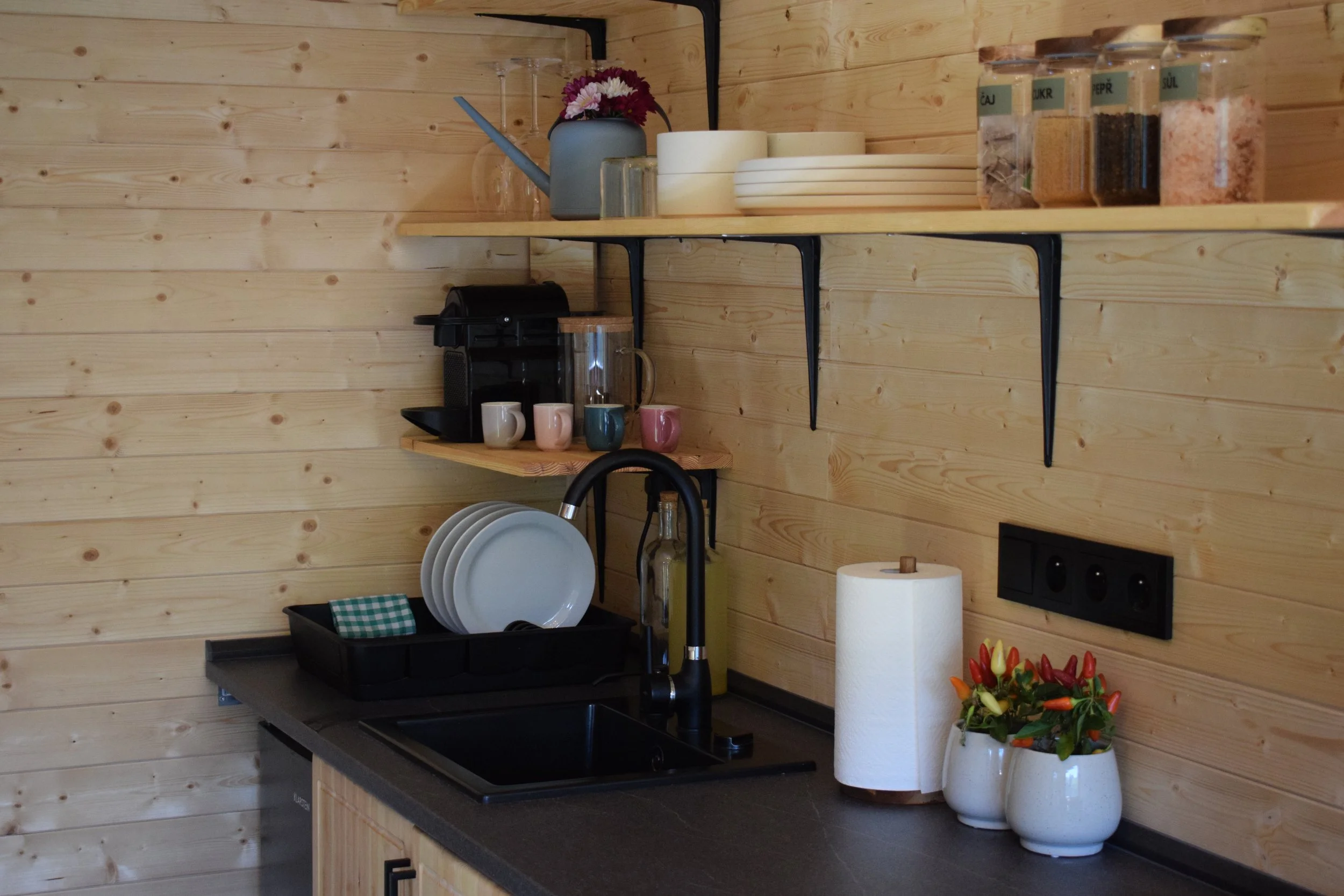 Tiny house se spacím patrem je vhodný na jakýkoliv pobyt pro 3 osoby.